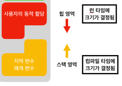 동적으로 할당된 메모리는 Heap에 할당된다. Heap 영역은 런타임에 결정된다.- Stack / Heap