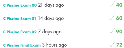 첫 주에 열심히 Shell 문제를 풀고 있으면 어느샌가 금요일이 다가온다. 매주 금요일은 Exam이 있는 날이다. Exam은 첫째 주부터 C언어로 진행되니 Shell을 너무 오래 붙잡고 있지 않았으면 한다. 항간의 소문에 의하면 Exam이 자신의 진도에 맞춰 출제된다는 말이 있었지만 이는 완전히 거짓이다. 모두가 같은 수준의 문제를 풀게 된다. (물론 문제의 요구 조건이 조금씩은 다르다.)