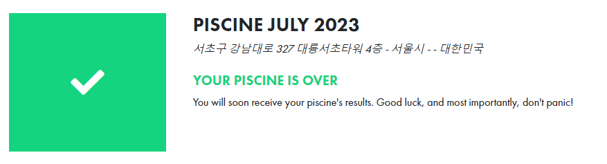 총 4주간의 여정이 끝나게 되면 마지막 주 금요일에 Final Exam을 치르게 되고, Exam이 종료됨과 동시에 라피신은 마무리 된다.
