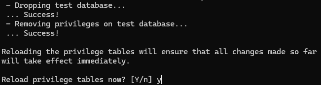 Reload privilege tables now?→ Y