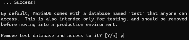 Remove test database and access to it?→ Y
